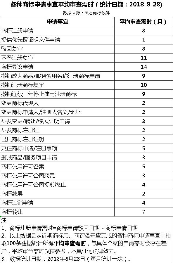 | 各種商標(biāo)申請(qǐng)事宜平均審查需時(shí) |