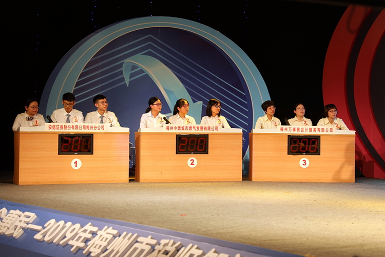 經(jīng)過一個多小時比拼,梅州中燃城市燃?xì)獍l(fā)展有限公司以325的成績獲得了知識競賽第一名。梅州萬事易會計(jì)服務(wù)有限公司、梅州市俊成汽車銷售服務(wù)有限公司獲得第二名,安信證券股份有限公司梅州分公司、博敏電子股份有限公司、梅州智友企業(yè)管理服務(wù)有限公司等3支代表隊(duì)伍獲得第三名。